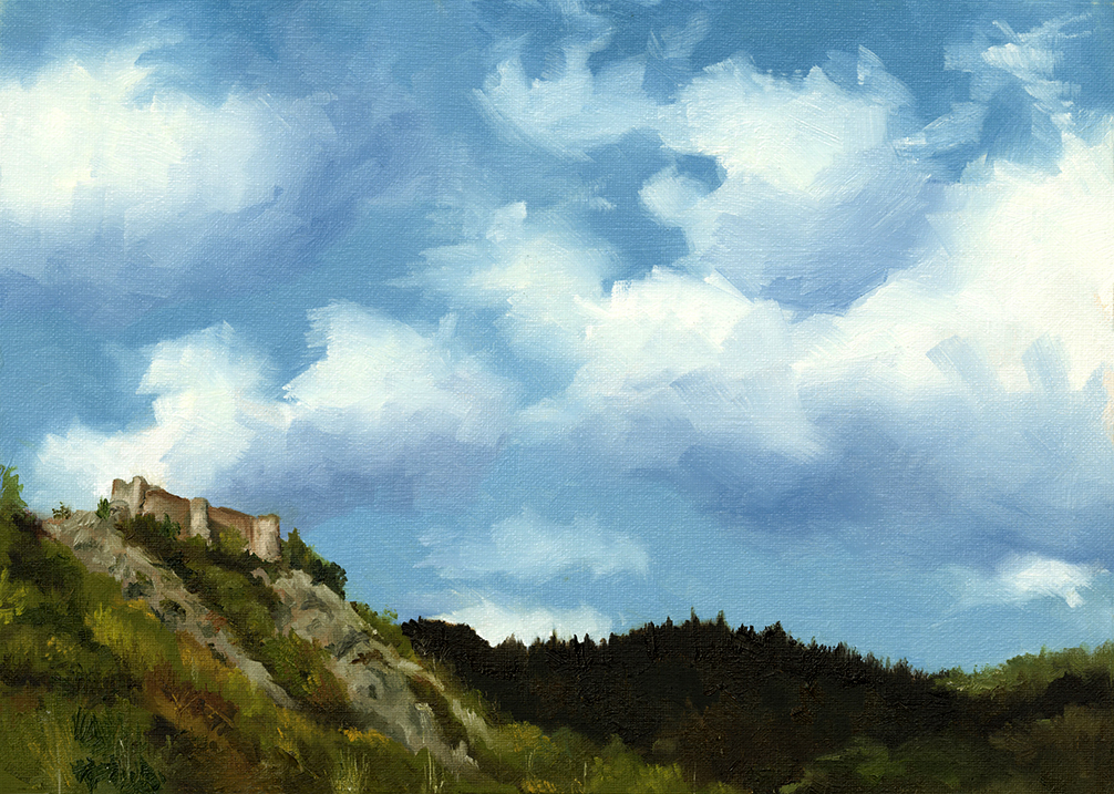 “I have a particular fascination with human intervention on the landscape and the resulting tension between permanence and impermanence: ancient monuments and architectural ruins being a favourite theme. I am intrigued by the way these become absorbed into the surrounding environment over time, while maintaining some presence of their own.”