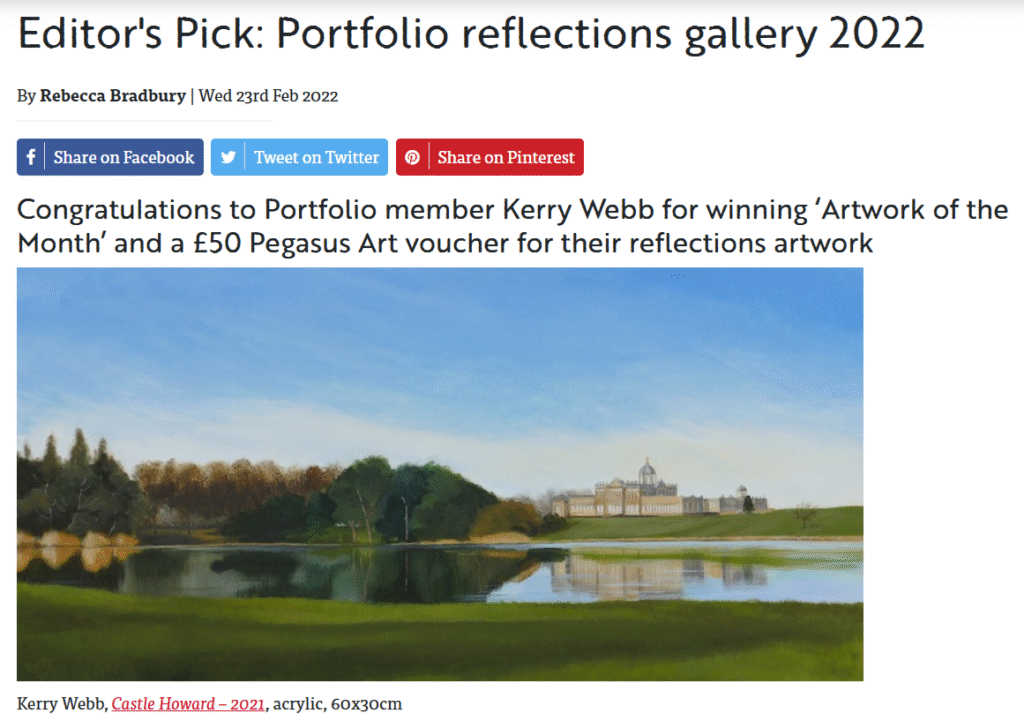 Awarded Artists & Illustrators magazine ‘Artwork of the Month’ Editor’s Picks ‘Reflections’ competition: February 2022