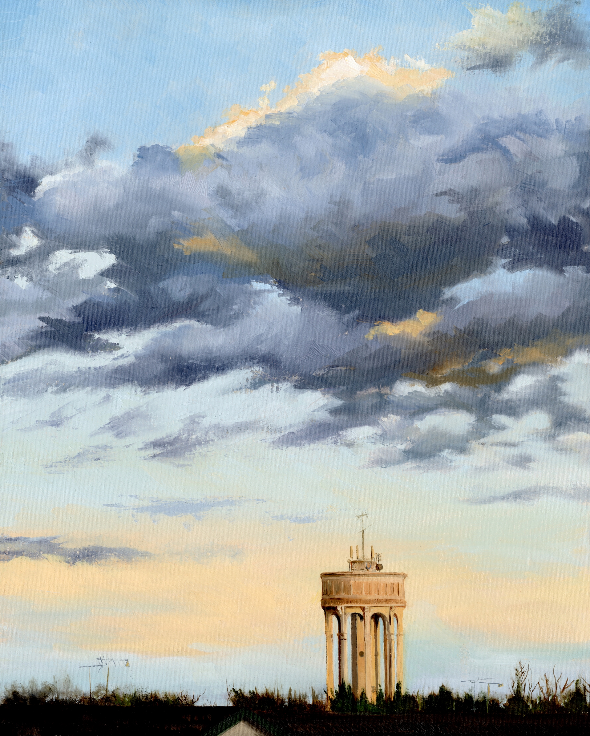 Tilehurst Water Tower, early February evening